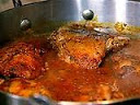 Remove chicken from liquid and serve on hot buttered rice. Ladle the sauce on top and garnish with fresh chopped parsley.