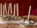 When the gelato balls have frozen with their sticks in place, place the chocolate in a double-boiler over very gently simmering water until melted. Next to the pot of chocolate, place the toasted, chopped hazelnuts in a shallow bowl.