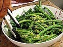 Blanch green beans in a large stock pot of well salted boiling water until bright green in color and tender crisp, roughly 2 minutes. Drain and shock in a bowl of ice water to stop from cooking.