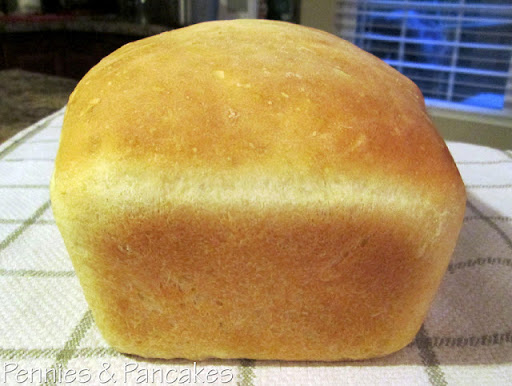 Punch the dough down, divide and and form into 2 loaves. Place the dough in 2 greased bread pans. (I use 9" pans.) Cover and let rise till the top of the dough is an inch or two above the bread pans.