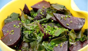 Salad of Roasted Beets, their Greens, and Chives