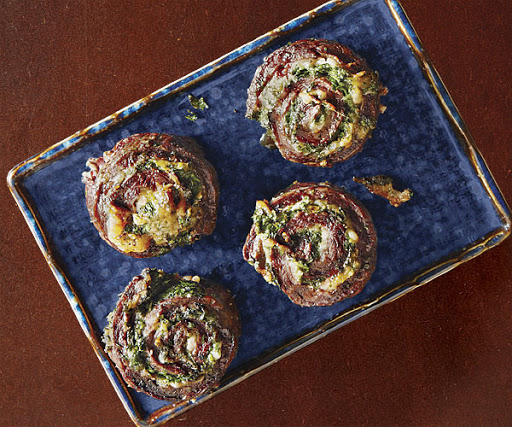 Prepare a high (500°F to 600°F) charcoal or gas grill fire. Cook the pinwheels cut sides down, flipping once, until browned on both sides and cooked to your liking, about 6 minutes per side for medium rare (135°F). Let rest for 5 minutes before serving.