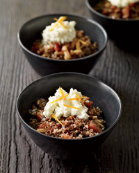 Add the quinoa to the skillet and stir gently to incorporate the almonds and apricots. Top each portion of quinoa with a tablespoon of ricotta and serve.