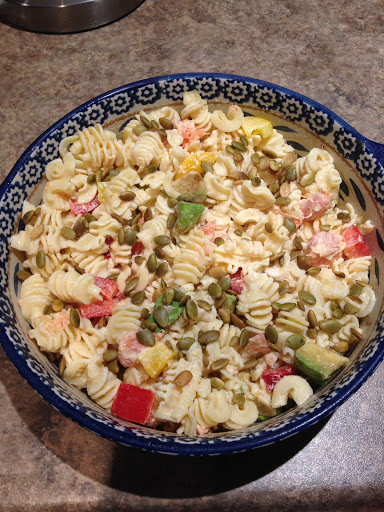 5. Stir the mayo mixture, pepper and orange (plus juice) into the cooked pasta.
