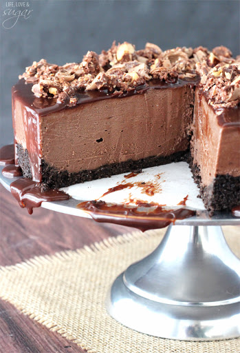 9. Let the ganache to cool slightly and thicken before pouring over cheesecake.