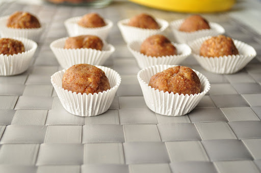 In the food processor, grind the almonds and dried bananas into a fine consistency.