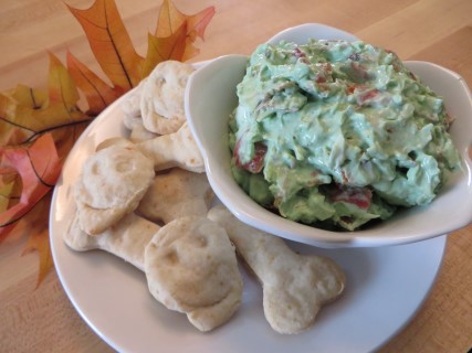 13. Once your Skeleton Bone Crackers are cool, tray them up with your Green Goblin Dip and you are ready to serve!