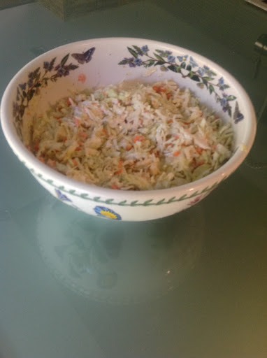 Combine all ingredients except for cili sauce an mayonnaise and pour over cabbage.