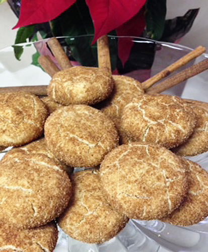 Mix sugar and cinnamon in small bowl. Form ½ inch balls of dough and roll in cinnamon sugar mixture. Press onto parchment lined baking sheet.