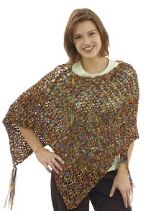 form a loop, then draw ends through loop and pull gently to snug up against surface of Poncho. Trim so strands measure between 9” and 12”.
