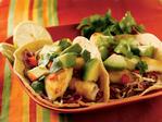 Avocados are a wonderful companion to fish. Put the two together in a soft taco with some simply dressed shredded cabbage and you’ve created a feast. Use coleslaw from a bag to save even more time.