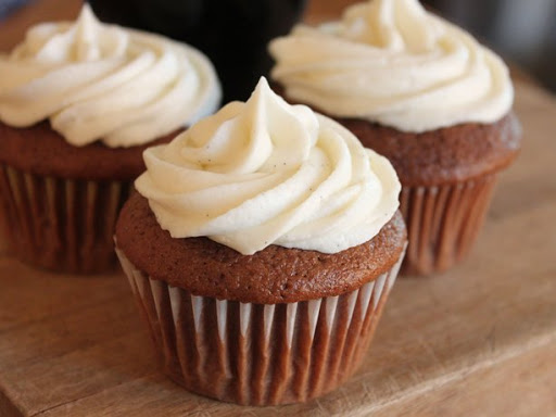 4 In medium bowl, beat butter and powdered sugar with electric mixer on medium-low speed until combined. Gradually beat in milk. Cut vanilla bean in half and scrape out seeds. Discard bean; add seeds to frosting. Beat on medium speed until fluffy. Pipe or spread frosting on cupcakes.