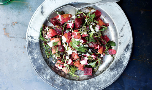 The beet juices will tint the potatoes swirly-pink when tossed together; it’s best not to fight it.