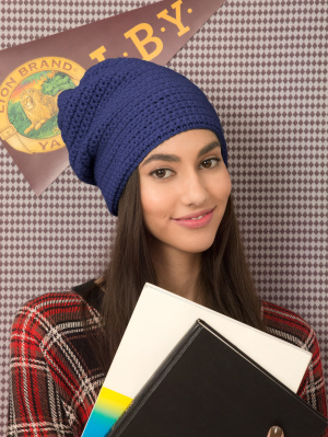 2. Completed piece is sewed together to make a tube, then one end of the tube is gathered to make the top of the Hat.