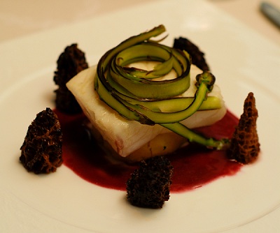 Sous Vide Halibut Beurre Rouge …with Shaved Asparagus, Morels, and Heirloom PotatoesHalibut Beurre Rouge with Shaved Asparagus, Morels, and Heirloom Potatoes