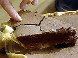 Pour batter into the piecrust; you will have about 1 cup of left-over batter. Place pie in oven on middle rack. Bake for 1 hour and 15 minutes to 1 hour and 25 minutes, or until the pie is crisp on top and a knife inserted in the center comes out with just a bit of moist chocolate on it.