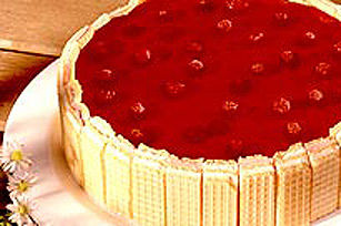 FOLD in topping. Pour into prepared pan, arrange raspberries on top and chill.