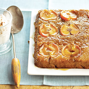 Bake at 350 degrees F for about 35 minutes or until a wooden toothpick inserted near center comes out clean. Cool cake in pan on a wire rack for 5 minutes. Loosen edges and invert onto serving platter. Spoon any topping left in pan over the top of cake. Cool about 20 minutes; serve warm with ice cream.