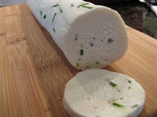 Unwrap the curd & place in the bowl of a stand mixer with a dough hook. Knead for 10 - 15 minutes until the curds become dough-like, silky & not grainy at all. (You can also do this part by hand though it might take a little longer.) Add the salt & chives & blend to combine. Roll the cheese into a 2-inch log. Wrap in wax paper & chill for at least two hours up to 3 days. Slice to serve