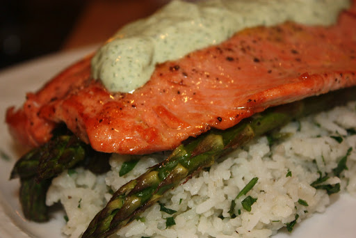Salmon with basil cream sauce