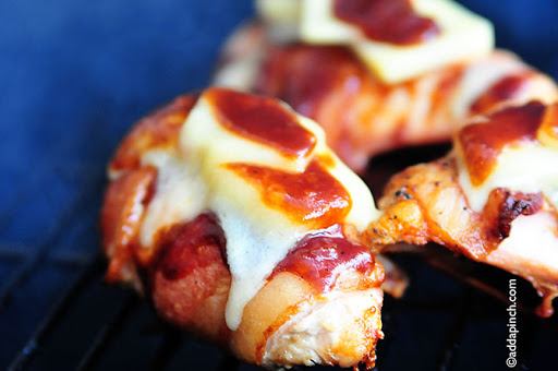 6. Drizzle more bbq sauce on top of Cheddar cheese. Cook on grill about 3-5 more minutes to allow cheese to begin to melt.