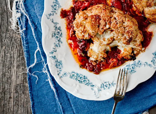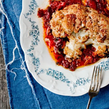 Whole Pot-Roasted Cauliflower With Tomatoes and Anchovies