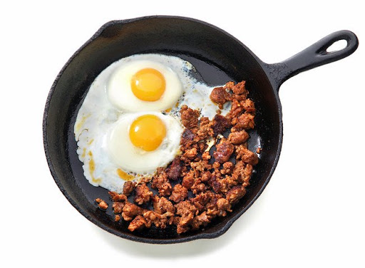 2. Attach the knife and grinding-plate attachments to a stand mixer. Run the pork and beef through the grinder into a large bowl, followed by a slice of bread to push out any bits of meat stuck inside the works. Discard any ground bread. Add the remaining ingredients and mix together with your hands. Knead the meat until it seizes up and holds together, about 2 minutes. At this point you can shape the sausage mixture into patties.