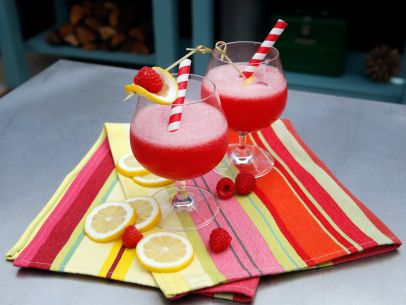 Combine the frozen raspberries, lemonade concentrate, vodka, ice cubes and 1/2 can of water (from the lemonade can) and puree in a blender until smooth.