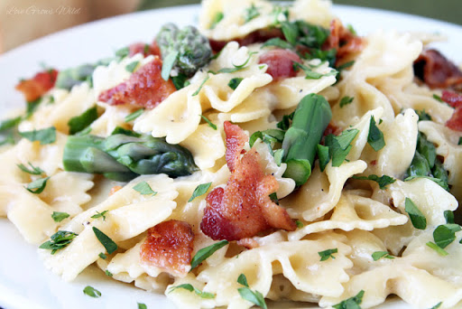 5. Remove asparagus with a slotted spoon, and set aside with the bacon.