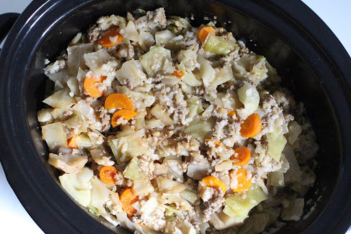 2.Remove pot from heat and add cabbage, carrots, salt, and pepper. Stir to combine.