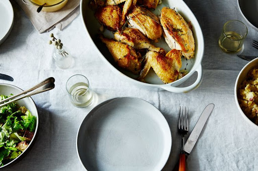 - One 3 1/3 pound whole free-range, skin-on chicken, cut into eight pieces and backbone removed
