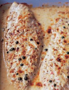Combine the crème fraîche, two mustards, shallots, capers, 1 teaspoon salt, and 1/2 teaspoon pepper in a small bowl. Spoon the sauce evenly over the fish fillets, making sure the fish is completely covered. Bake for 10 to 15 minutes, depending on the thickness of the fish, until it’s barely done. (The fish will flake easily at the thickest part when it’s done.) Serve hot or at room temperature with the sauce from the pan spooned over the top.