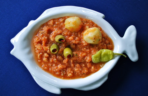 Caliente el aceite, acitrone la cebolla y el ajo. Agregue el pure de tomate y el perejil, hierva por 10 min.