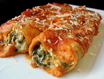 Artichoke-Spinach Canneloni with Roasted Red Pepper Sauce