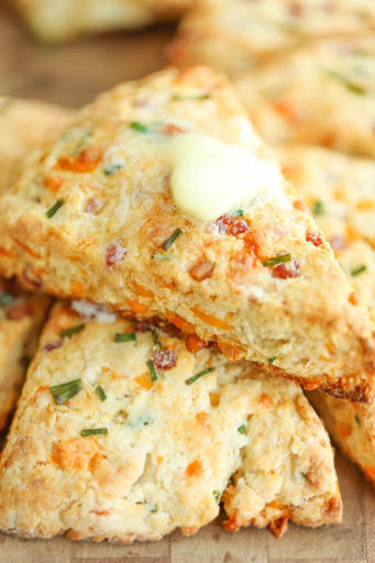 Place scones onto the prepared baking sheet. Place into oven and bake for 18-20 minutes, or until firm to the touch and lightly browned.