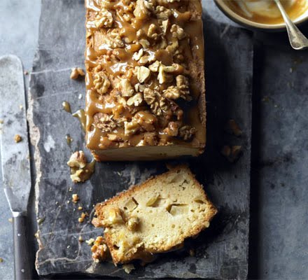 4. To decorate, put the toffees in a small saucepan with the double cream. Gently heat, stirring, until toffees have melted into a smooth caramel sauce. Cool for about 1 min while you gently turn out the cake. Slowly drizzle the toffee sauce over the top of the cake. Scatter immediately with the extra walnuts - they should stick where they hit toffee. Leave for 10 mins before serving. Best fresh but will keep in an airtight tin for 3-4 days.
