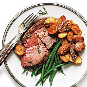 A standing rib roast is a bone-in prime rib roast. Serve with roasted potatoes and steamed green beans.