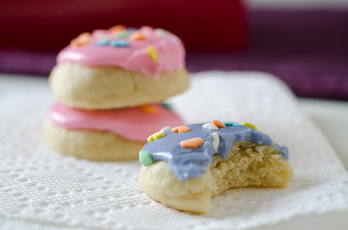 In a medium bowl, combine the flour, baking powder and salt. In the bowl of an electric mixer, beat together the butter and sugar on medium-high speed until light and fluffy, about 2-3 minutes. Add eggs, one at a time, beating well after each addition. Stir in the vanilla. With the mixer on low speed, gradually add the dry ingredients just until incorporated and evenly mixed. Cover and chill the dough for 1 hour.