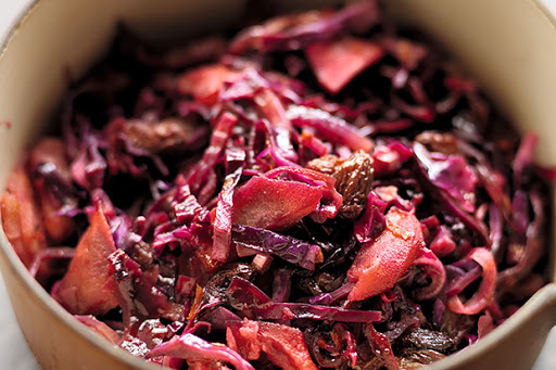 - 500 g (1lb 2oz) red cabbage (or 1 small head), core removed and leaves thinly sliced
