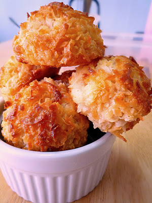 I have a similar coconut macaroon recipe, and I add chopped pecans to mine... Dipping them in melted white chocolate is really good, too...