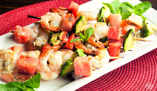 Paleo Grilled Shrimp Skewers with Watermelon and Avocado