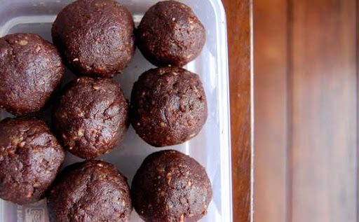 3.Using a spatula, transfer the mixture into a bowl. Using your hands, form small round balls, rolling in your palm. Store in an airtight container in the refrigerator for up to a week.