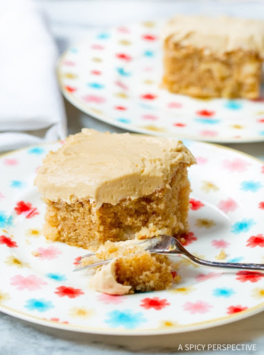 Scoop the frosting on top of the completely cooled cake and spread over the top. Cut into 24 pieces and enjoy!