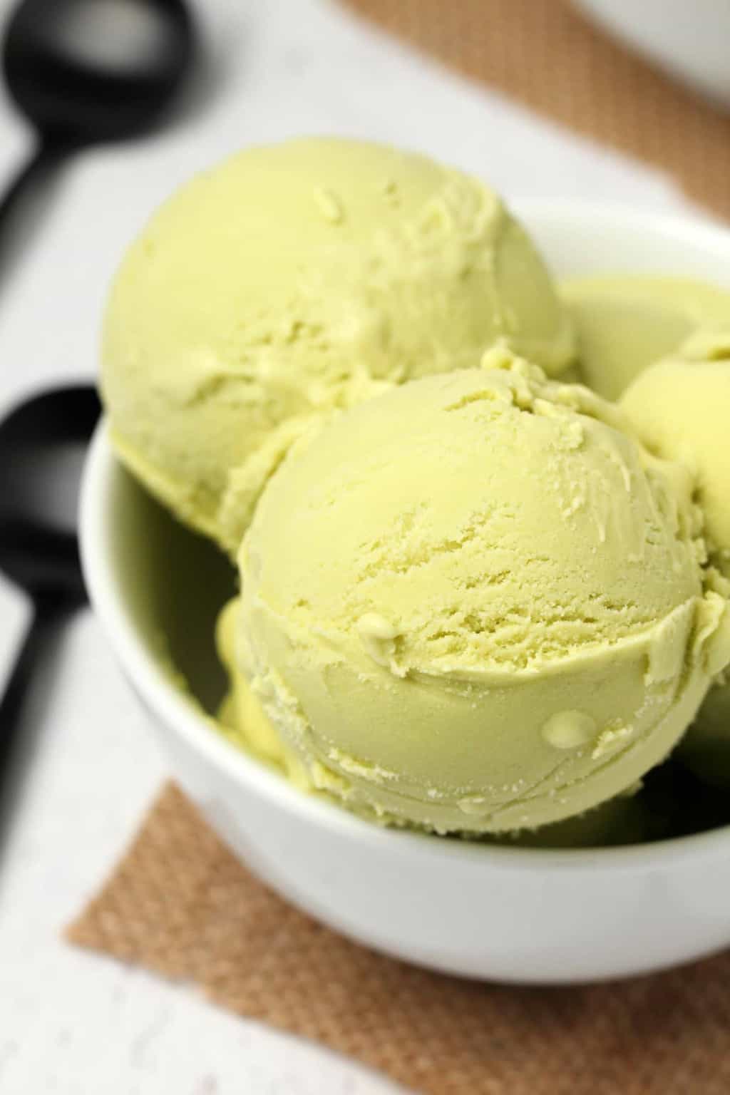 Creamy, smooth and divinely textured vegan avocado ice cream. Easy 8-ingredient recipe with perfect flavor and the perfect melt-in-your-mouth texture.