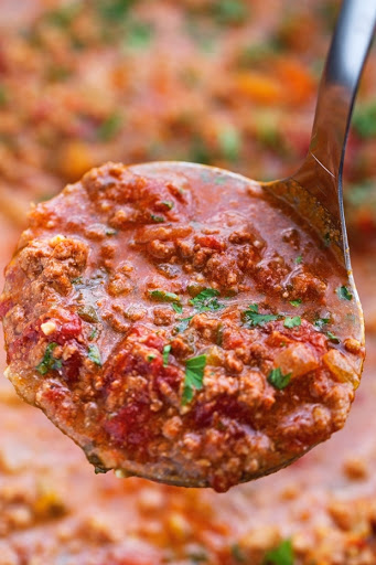 For the Ground Beef - I like to use about 3 pounds because I like a little extra meat throughout my meat sauce. If you like more sauce, just cut back the quantity of the meat to 2½ pounds. Also, you don't want to choose something that's too lean as it will dry out quite a bit in the long cooking process.