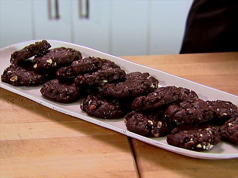 Add the chocolates and almonds and mix until combined. Using two tablespoons or a small ice cream scoop, drop the dough two inches apart on sheet pans lined with parchment. Bake for 13 minutes.