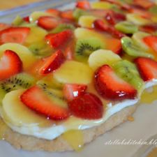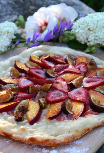 2. Spread crust with mascarpone cheese and top with 2 cups total of some or all of these grilled fruits (sliced strawberries, mangoes, peaches, watermelon, oranges, and/or pineapple).