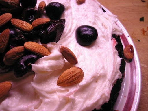 Preheat the oven to 375°. Grease and flour a 9″ cake pan. Sift together the dry ingredients in a large mixing bowl. In a separate small bowl, whisk together the wet ingredients. (Don’t just add them directly as you don’t want the reaction to begin prematurely.) Stir til just mixed; some lumps are okay, and the batter will turn lighter in color. Fold in the cherries and pour quickly into prepared pan. Bake 25 minutes or until a toothpick inserted in the center comes out clean. Don’t be tempted to peek before 20 minutes have passed, or your cake may not rise properly!