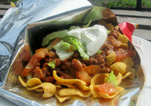 Grab a plastic spoon and stick it in the middle, and you're ready to enjoy a genuine Frito Pie.
