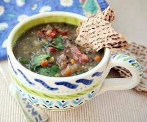 3. Stack the leaves and cut them in 1-inch ribbons. Add them to the soup with the lemon zest and juice. Cook for about 5 minutes, until the leaves are wilted. Taste and add more salt if needed. Crumble some toasted pita on top of each soup bowl for garnish.